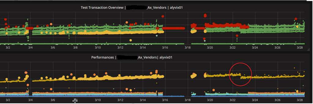 This illustrates the proactive function of Alyvix, especially when integrated in a monitoring system. Why? Because users hadn’t even started complaining. They hadn't even realized there was a problem yet. The decreases in responsiveness were so slow and gradual that they just continually rehabituated themselves. Of course, eventually they would complain, but when? After one more month of reduced productivity?