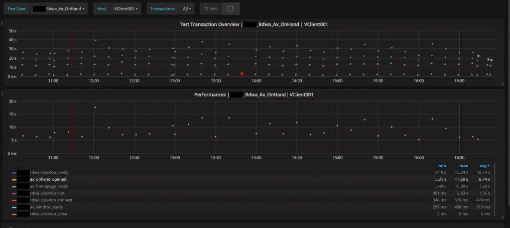 As you can see, Alyvix can also indirectly monitor Dynamics transaction infrastructure by measuring responsiveness over time of the graphical interface using that transaction infrastructure.